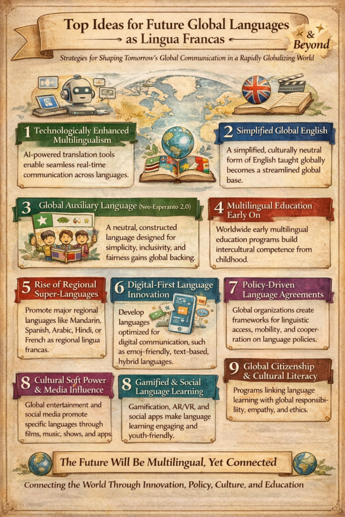 Global lingua francas—especially English in the modern era—serve as powerful bridge languages for international communication. They foster cross-cultural understanding, support economic growth, and enhance cooperation in trade, science, travel, business, education, sport, and entertainment. By connecting people across linguistic boundaries, these languages promote peaceful relations, broaden access to knowledge, and act as a passport to global opportunities.