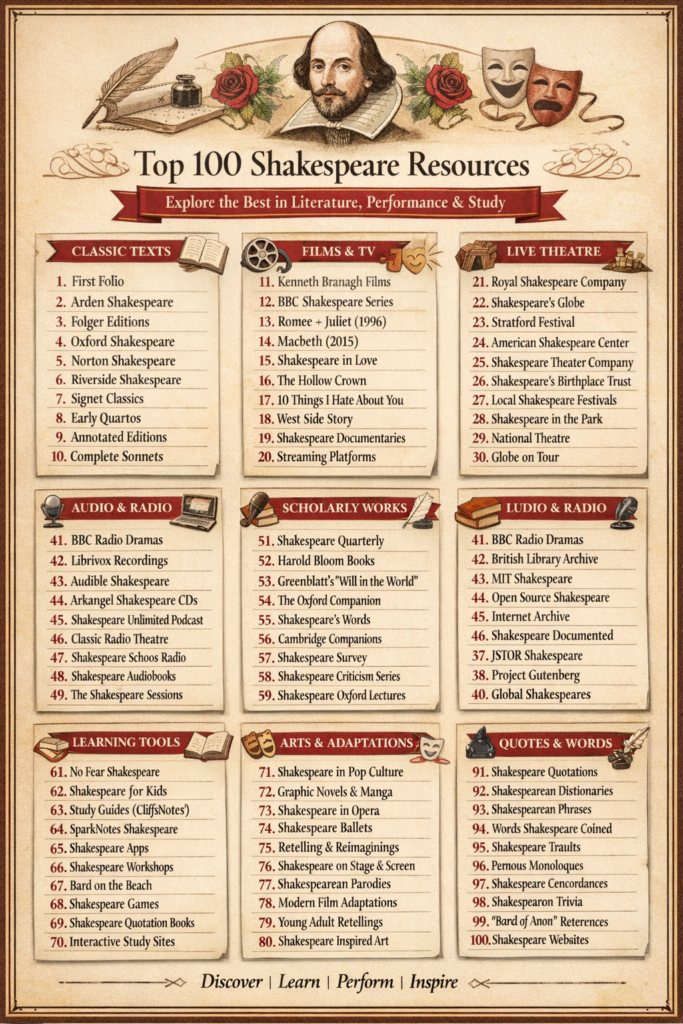 This list represents a comprehensive selection of the world’s most significant Shakespeare Day celebrations and First Folio events. Many more local readings, performances, and celebrations take place in schools, community theaters, libraries, and cultural centers worldwide to honor the Bard’s enduring legacy.