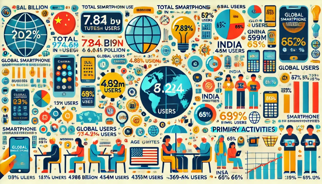 An infographic summarizing the global smartphone usage statistics for 2024.